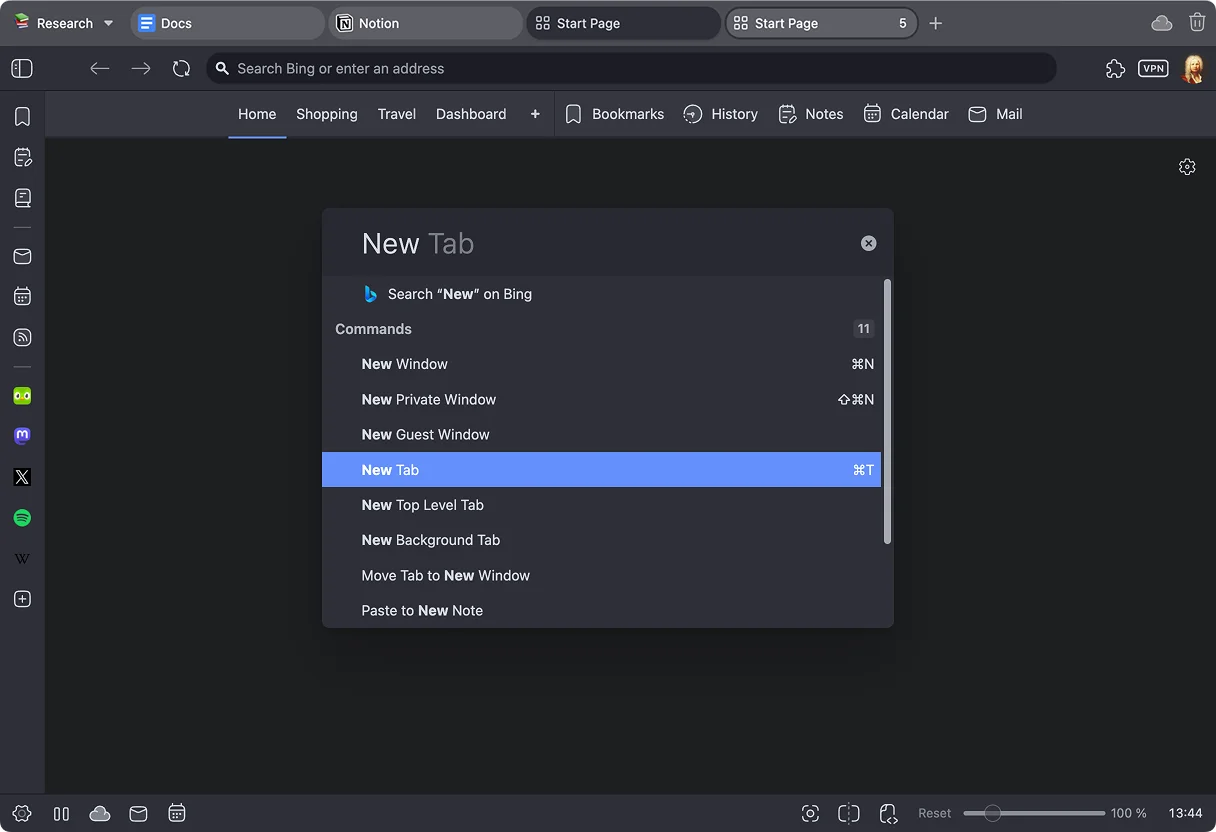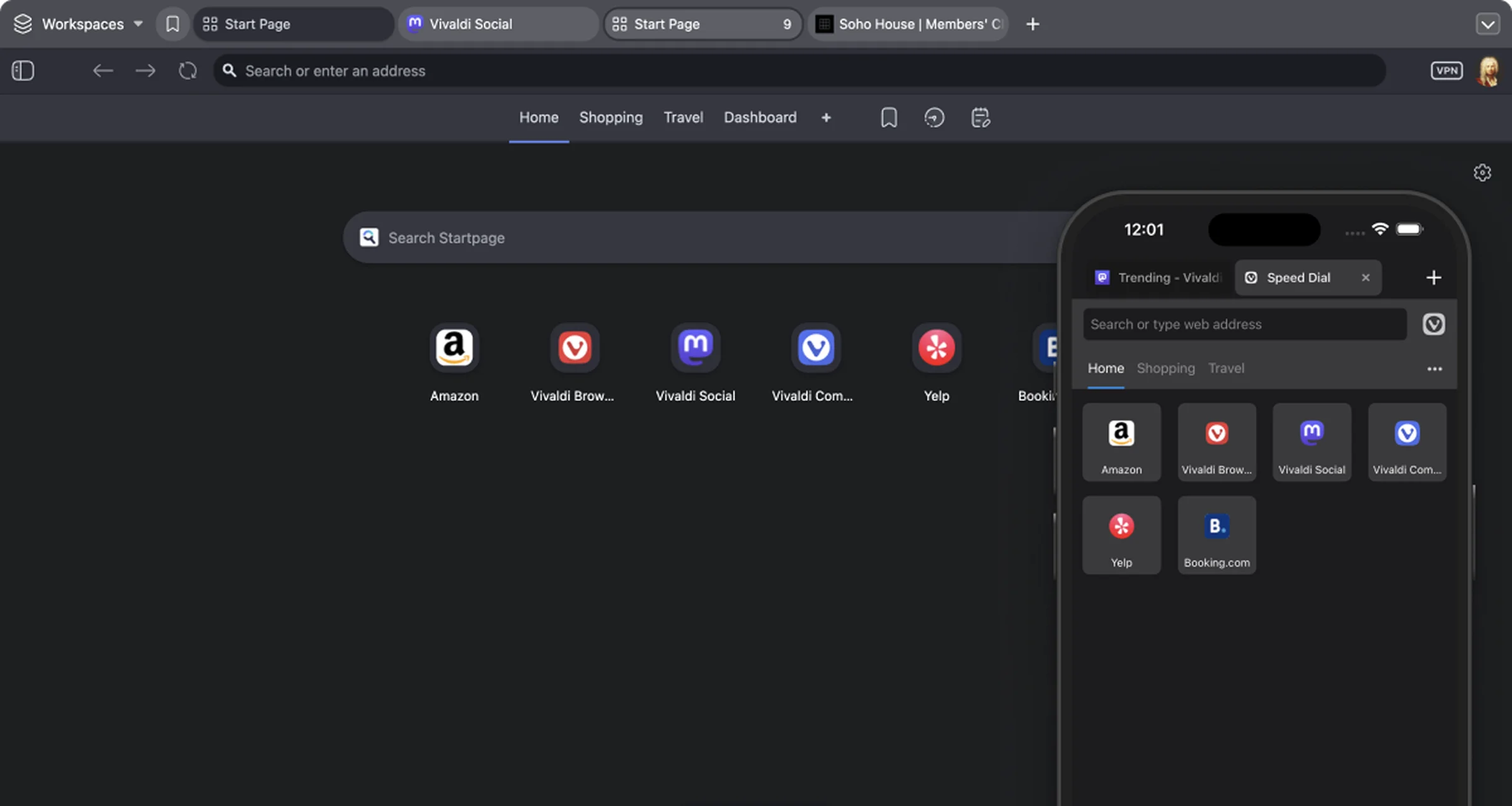 For power users, Vivaldi's tab management is simply unrivaled. Tab stacking, tiling, hibernation, and grouping enable productive multitasking even with dozens of tabs open. The side panel provides instant access to bookmarks, downloads, emails, history, web apps, and notes—removing the need to switch context. Privacy is a priority: built-in tracker blocker, ad filter, and a free VPN help safeguard the user's identity. Vivaldi does not track usage or sell user data, making it ideal for security-conscious users.